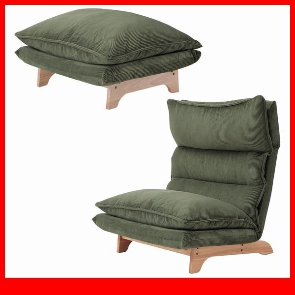 > ソファ★新品/脚付きリクライニングローソファ 1人掛け+オットマン/ハイバック ワイド 日本製 完成品/コーデュロイ グリーン/a2