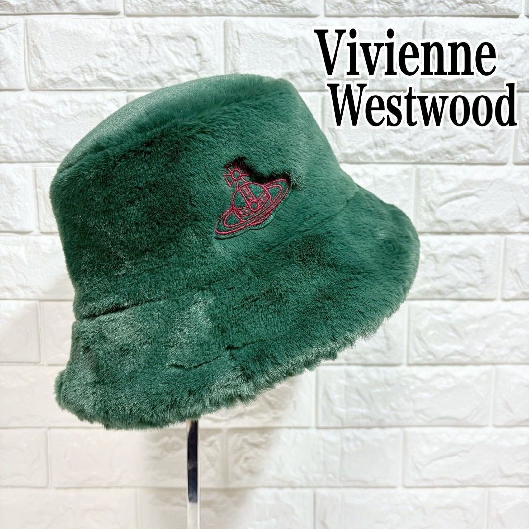 > ヴィヴィアン ウエストウッド エコ ファー バケット ハット オーブ 未使用 タグ付き グリーン M-S モコモコ 抗菌 防臭 UV 加工 サイズ調整