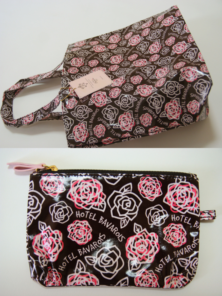 - 送料無料◆超お得な2セット【Hotel Bavarois】(ホテル ババロア)◆光沢感◆撥水性◆バラ柄◆トートバッグ&ポーチセット(チョコブラウン)