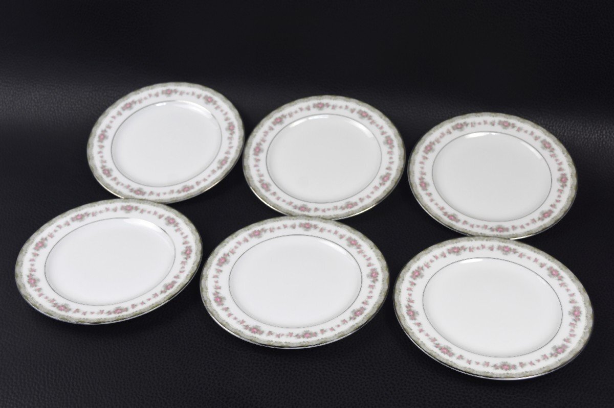 - [未使用品 ノリタケ] 月桂樹 RC印 薔薇文様 ケーキ皿 6客セット オールドノリタケ 花柄 ローズ ピンク プレート デザート皿 6枚セット