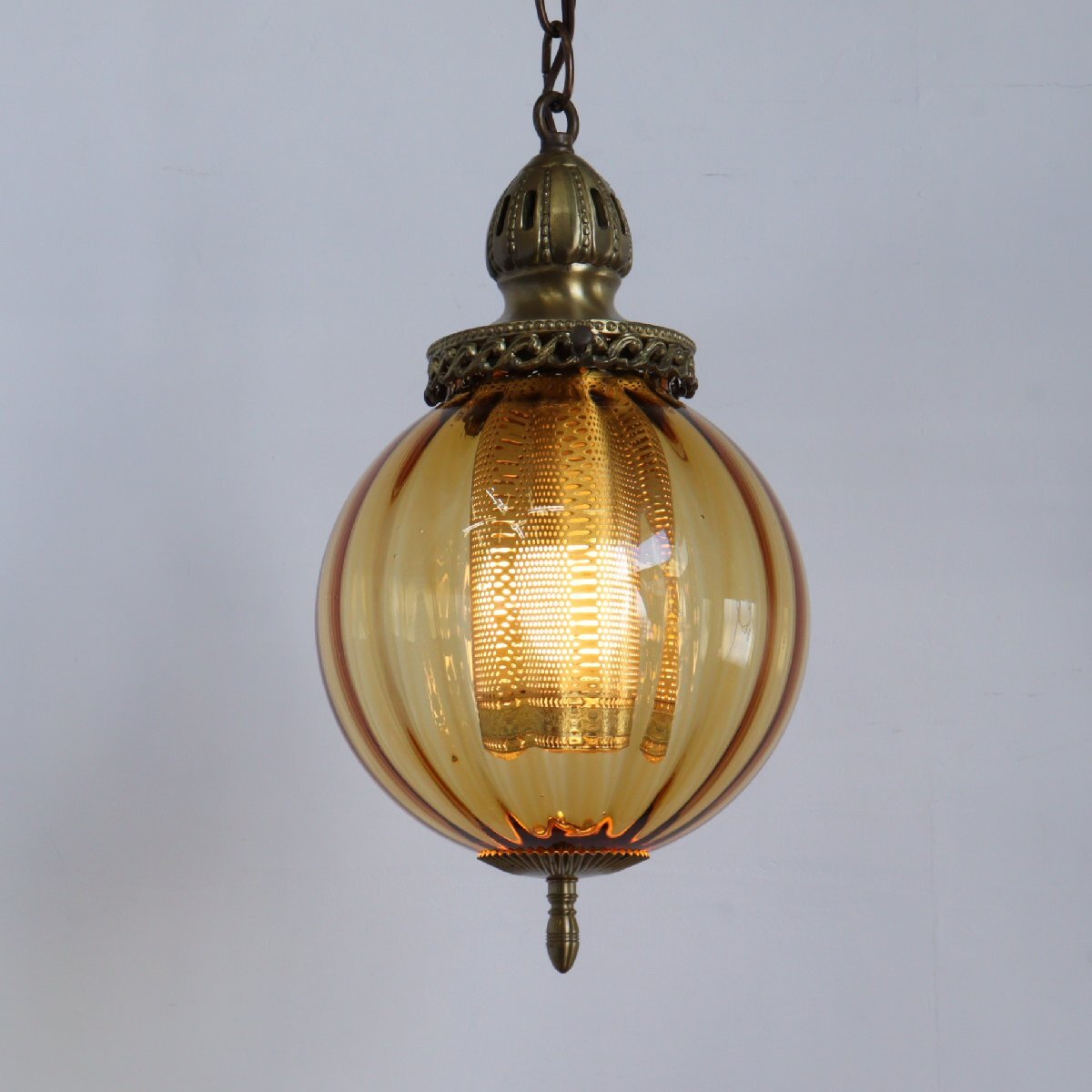 > 50s 60s ヴィンテージ アンバーガラス ペンダントランプ/アメリカ アンティーク 吊り下げランプ カフェ 照明 ガラス#702-70-1-183