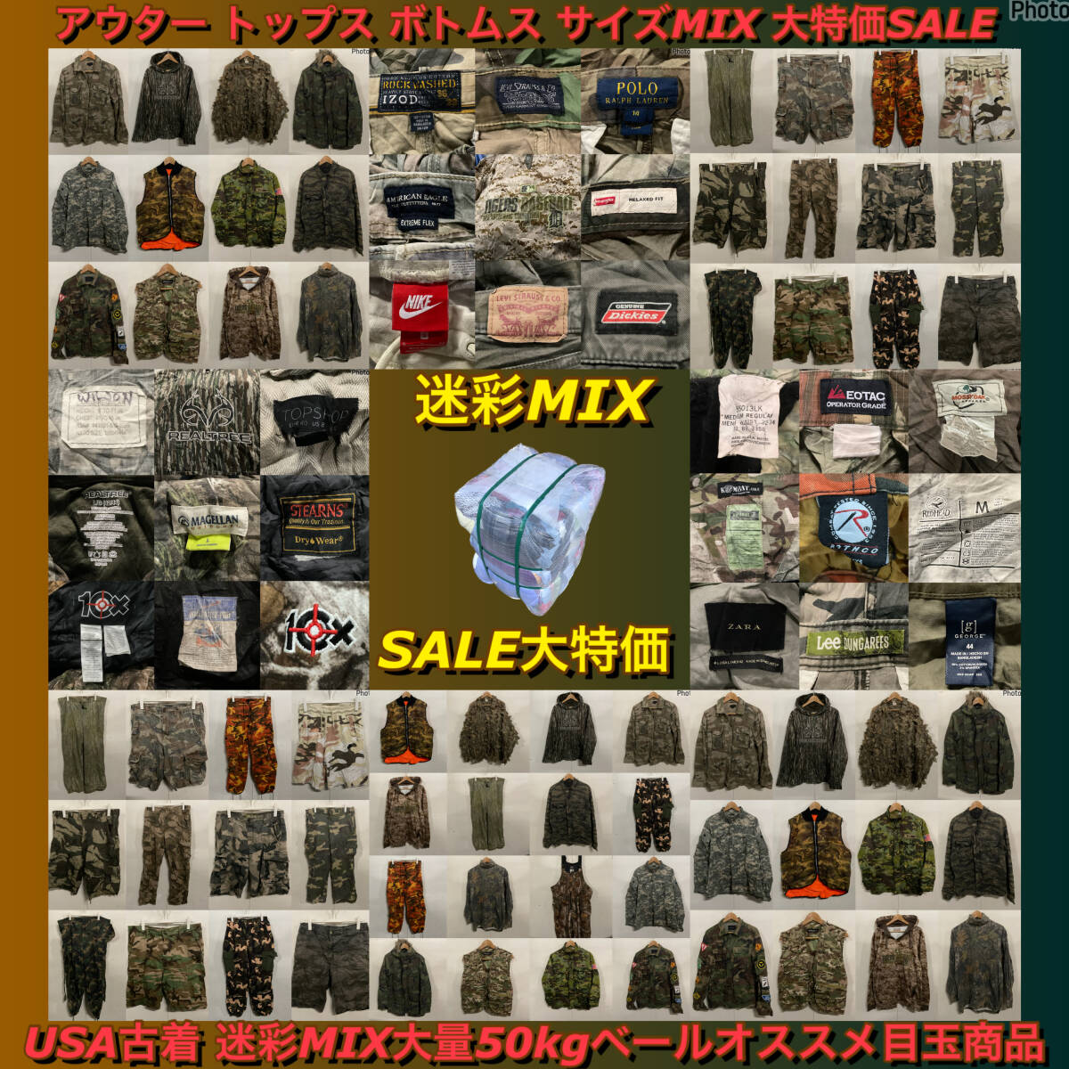 - 【T1784】★SALE★ アメリカ古着 迷彩MIX大量50kgベールオススメ目玉商品 アウター トップス ボトムス サイズMIX 大量仕入れ
