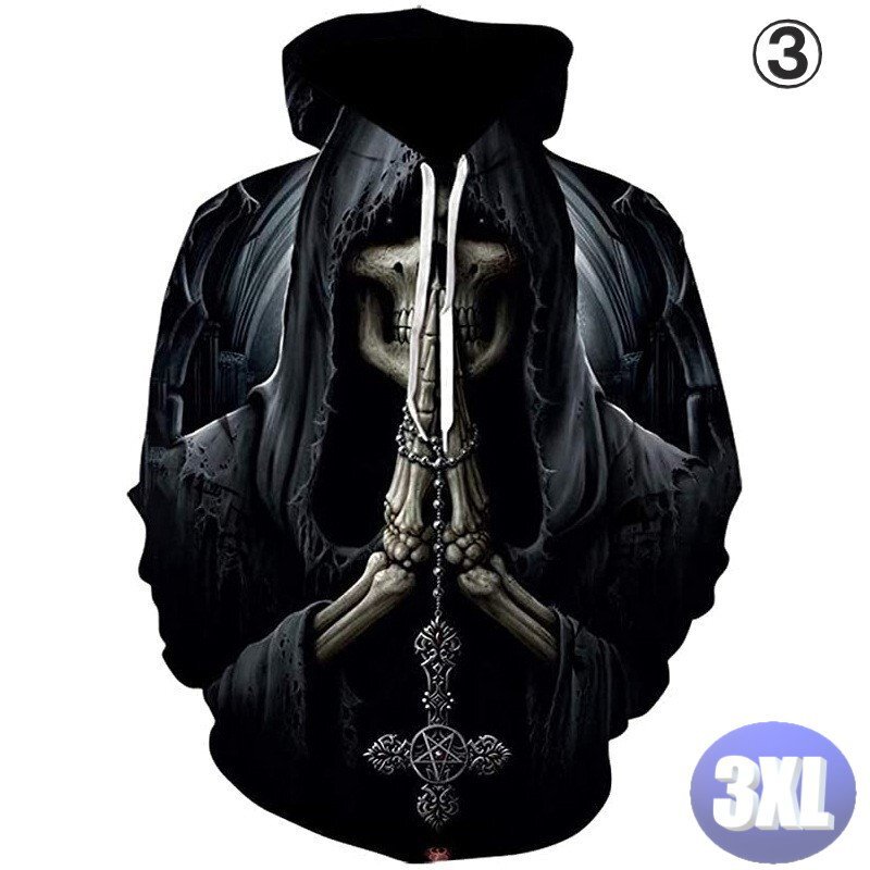 - フード付き ドクロパーカー カラー3 3XL トレーナー アウター 防寒 n716