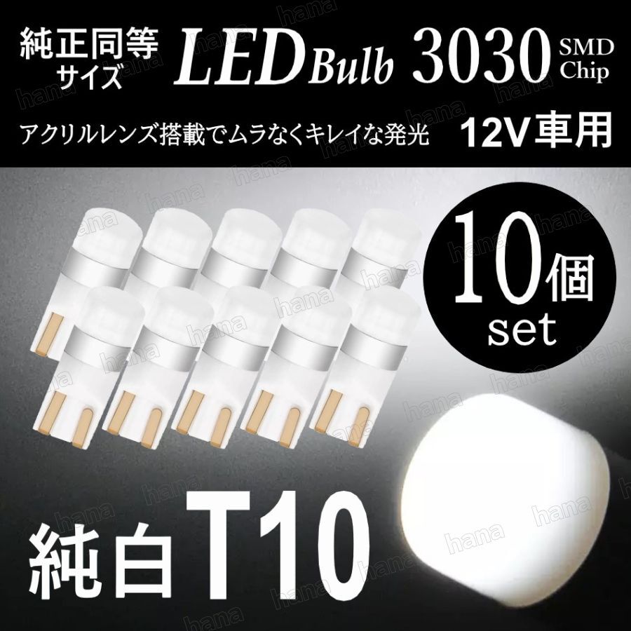 - LED 純白 ホワイト バルブ 拡散レンズ T10 T16 汎用 6000K 3030SMD 12V ウェッジ球 車検対応 10個 ルームランプ ナンバー灯