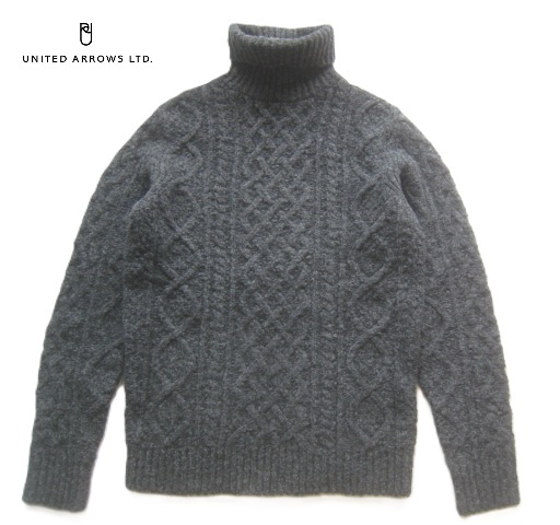 - 美品!!ユナイテッドアローズ UNITED ARROWS*タートルネック ケーブル編み アルパカウールニットセーター S ダークグレー