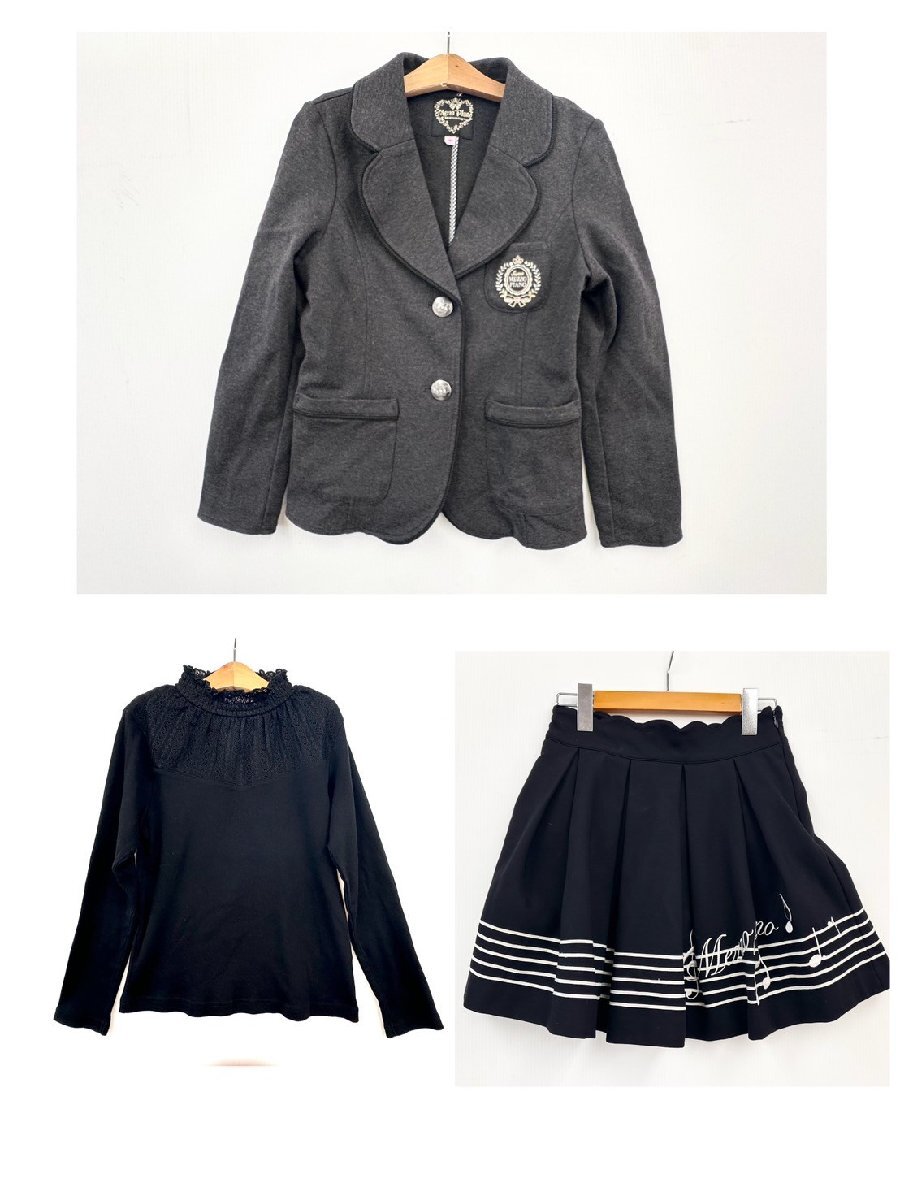 > mezzo piano[メゾピアノ]140~150 ブレザージャケット/トップス/スカート 3点 黒 グレー 音符 発表会 中古品/Ver.P8.0