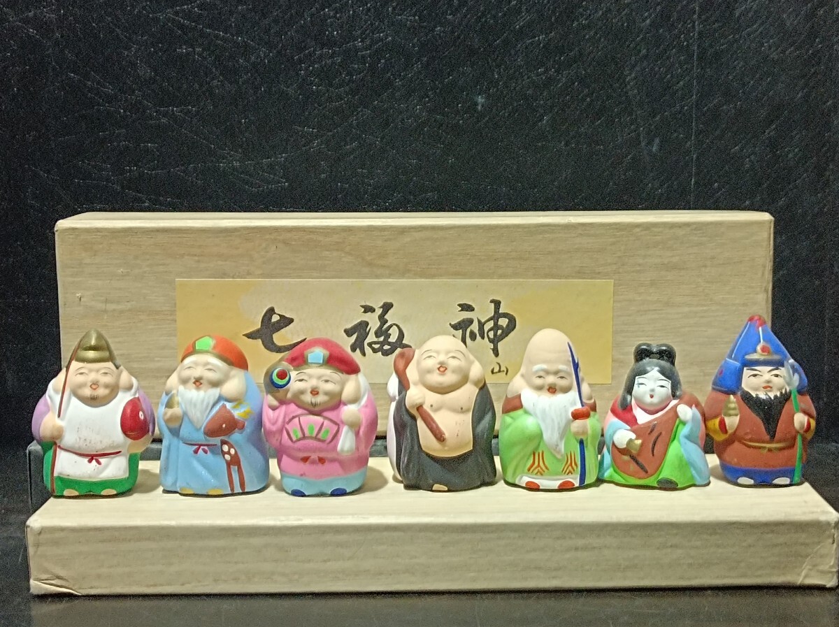 - 桜山特選 七福神 桐共箱 彩色七福神 縁起物 飾り物 置物 オブジェ