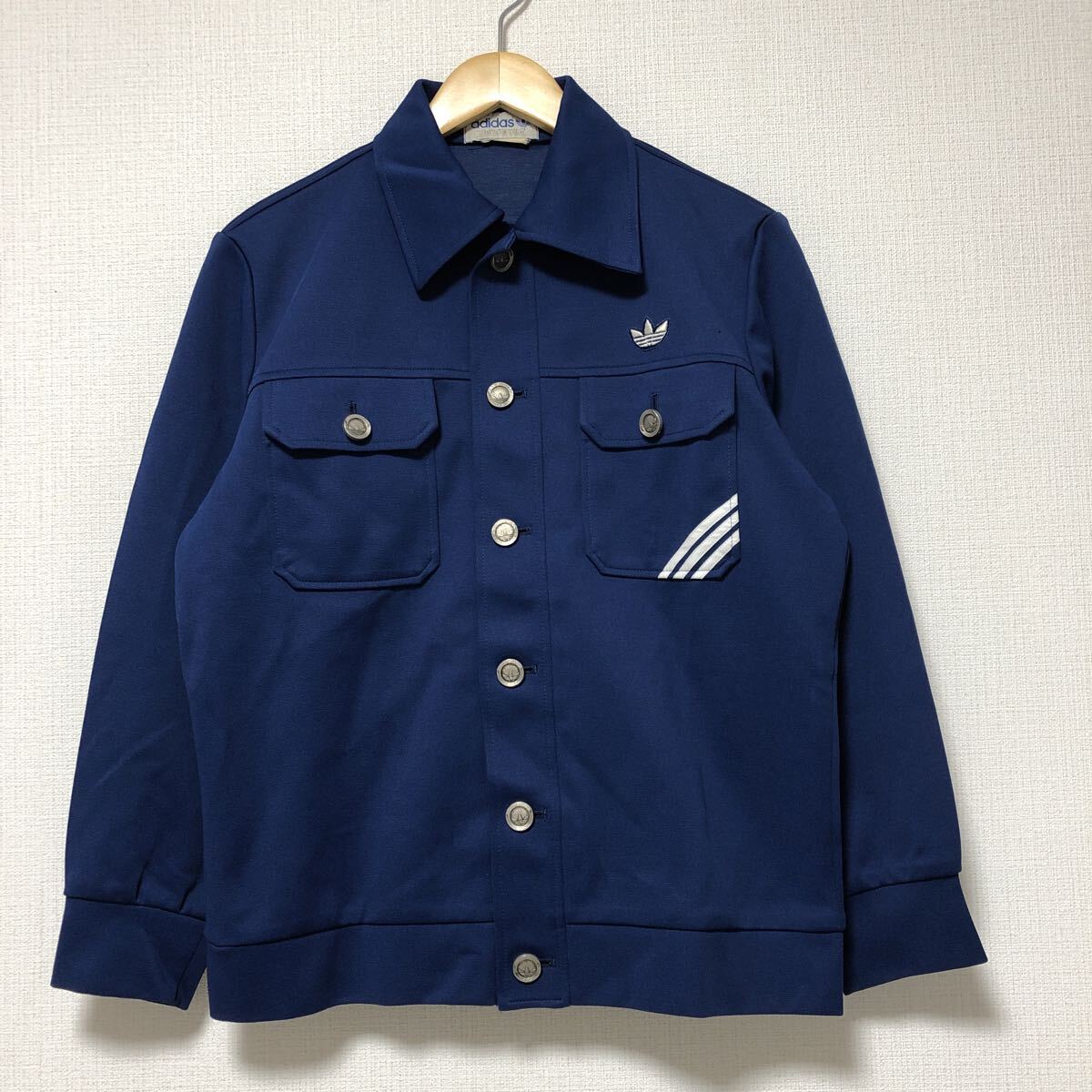 > (k) 80s 90s 年代 adidas アディダス ボタン ジャージ 紺 ネイビー L トラックジャケット デサント