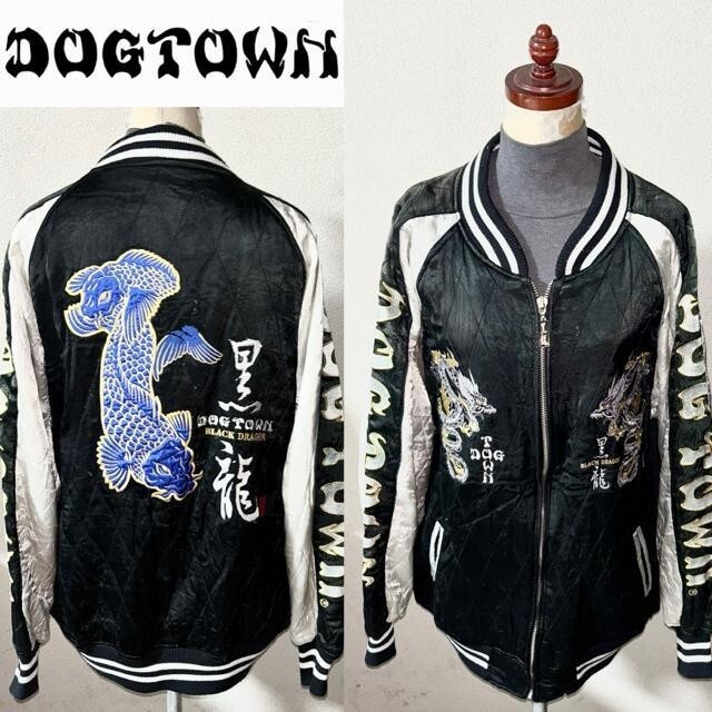 > 即落 送料無料 DOG TOWN ドッグタウン 黒 龍 スカジャン XL 和柄 刺繍 アメカジ ワーク ミリタリー ストリート 不良 ロック アウター 古着