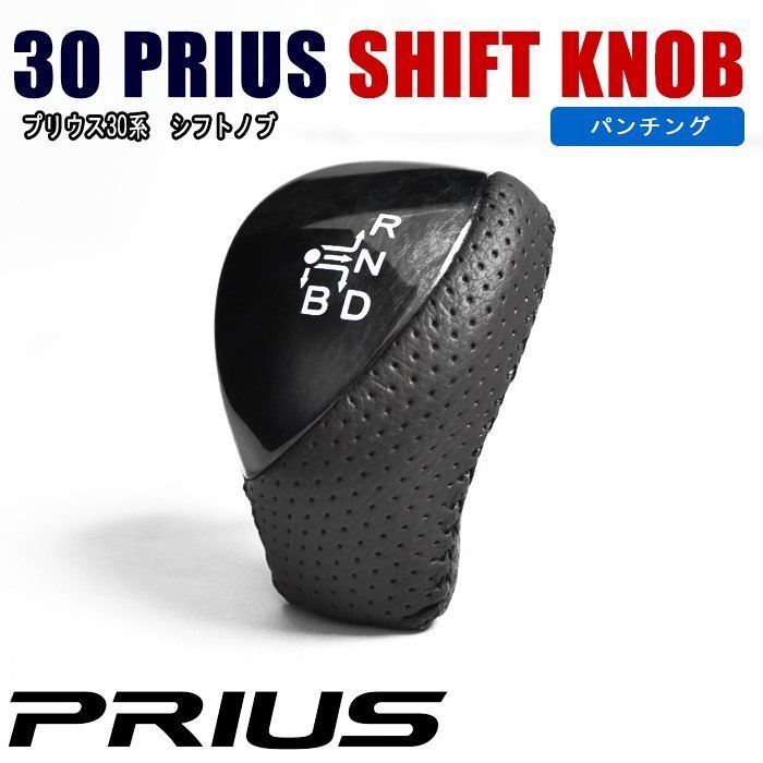 - ◆06522 ZVW 30 プリウス 印字 付き 黒木目 シフトノブ 本革調 PVC レザー 使用 新品