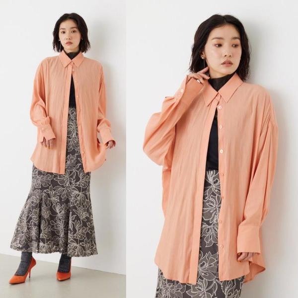 - rienda リエンダ サイドボタンシャツ オレンジ