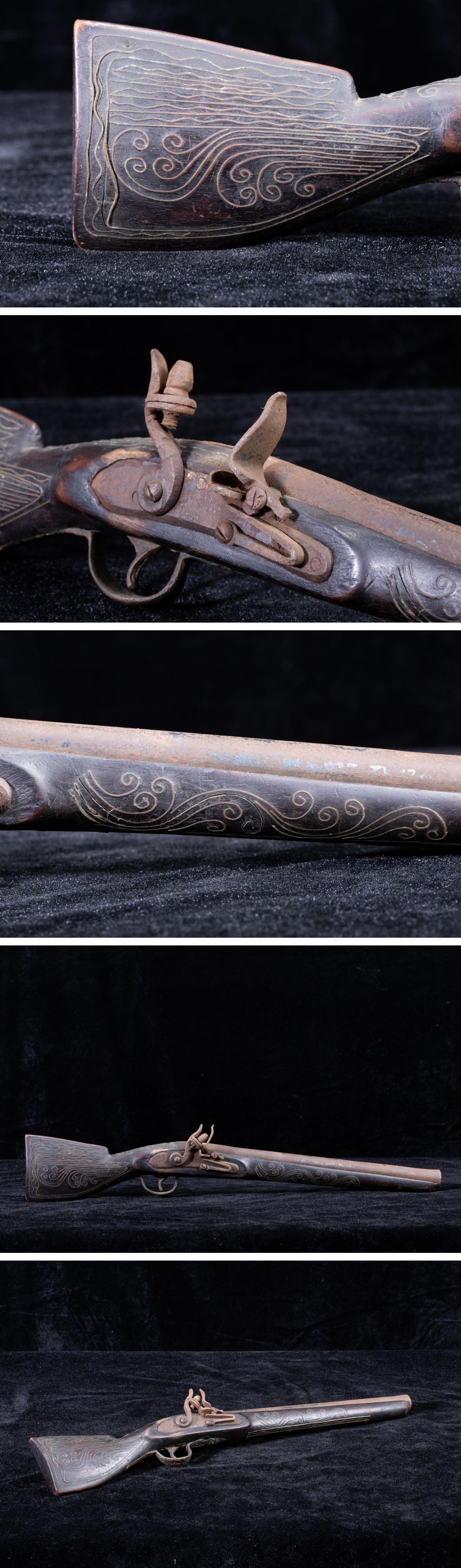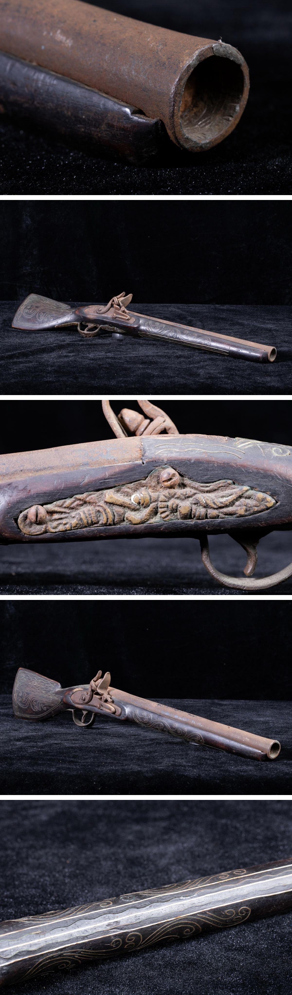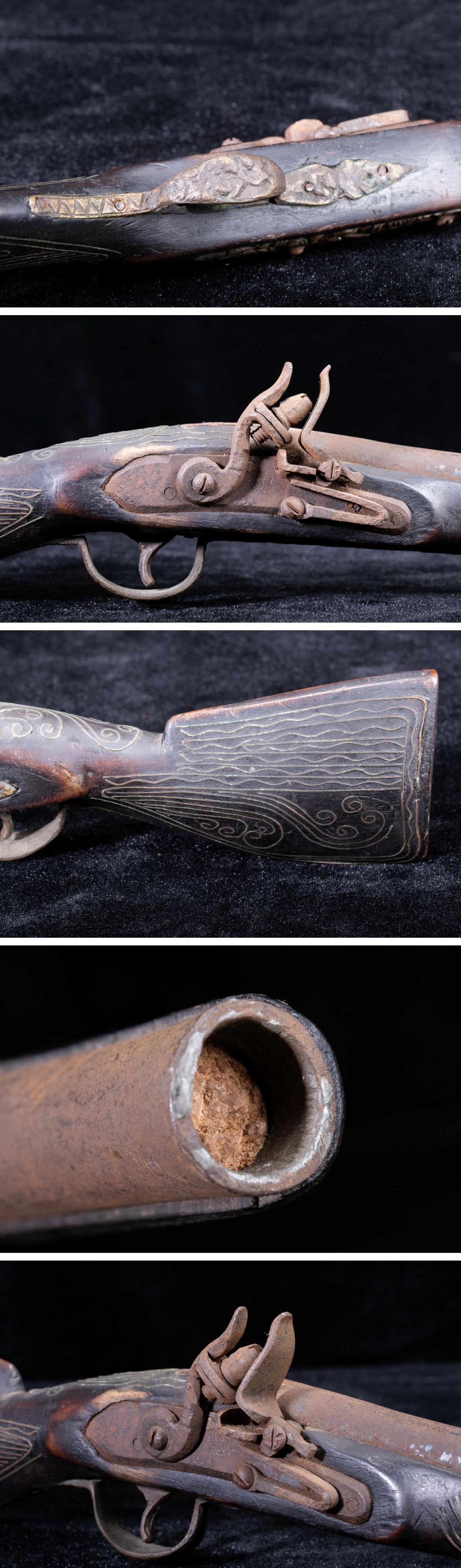 > 【珍品堂】1円から N22-V1 モデルガン 古式銃 管打ち銃 火縄銃 古式銃 模造銃 装飾銃 長52㎝ レプリカ 武具 時代物 骨董品 古美術