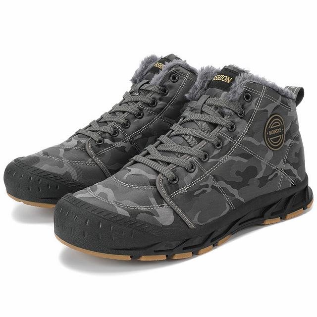 - ブーツ メンズスノーブーツ 靴 ハイカットオシャレ 裏起毛 ファー付き 雪靴 迷彩柄スノーシューズ ウィンターブーツ 冬用 グレー 27.5cm