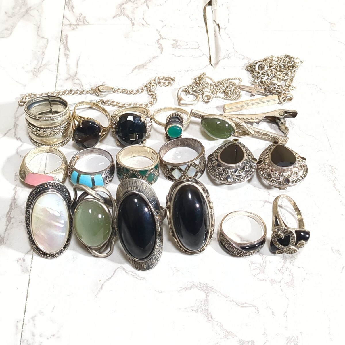 > 148g シルバー silver 925 刻印等 銀製品 ヴィンテージ リング アクセサリー 色石 天然石 デザイン ブレスレット ネックレス まとめ 1円