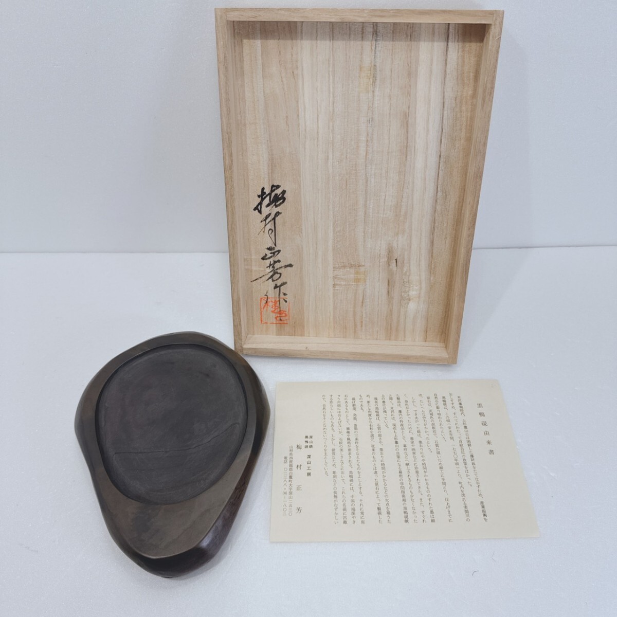 - 黒鴨硯 硯 書道具 文房具 梅村正芳 共箱 石工 古美術 骨董 レトロ アンティーク 深山工房 深山焼