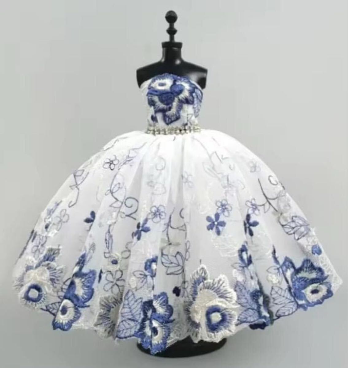 - お花の刺繍が入った水色のショートドレスバービーちゃん・リカちゃん・お人形さん用