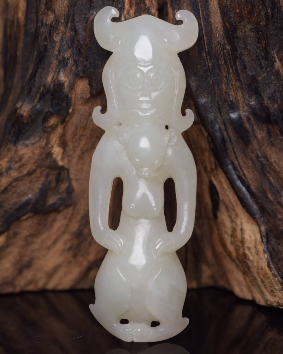 - 旧蔵 和田玉彫 人 根付 中国古玩 骨董品 時代物 稀少唐物
