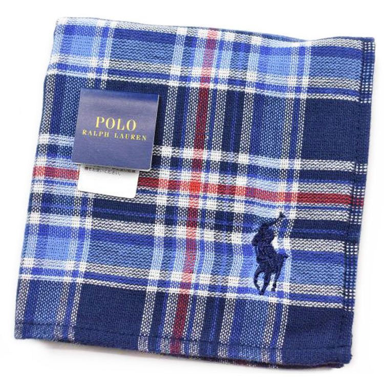 - ポロ ラルフローレン タオルハンカチ ハンカチ 1枚 メンズ ブランド 紺 ネイビー レッド チェック ロゴ 刺繍 男性 紳士