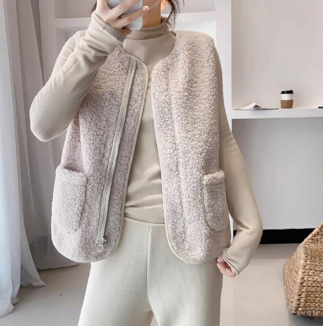 > 新入荷 ボアベスト レディース ジャケット アウター チョッキ フリースベスト ジレ 前開き もこもこ ゆったり 着痩せ ホワイトXL