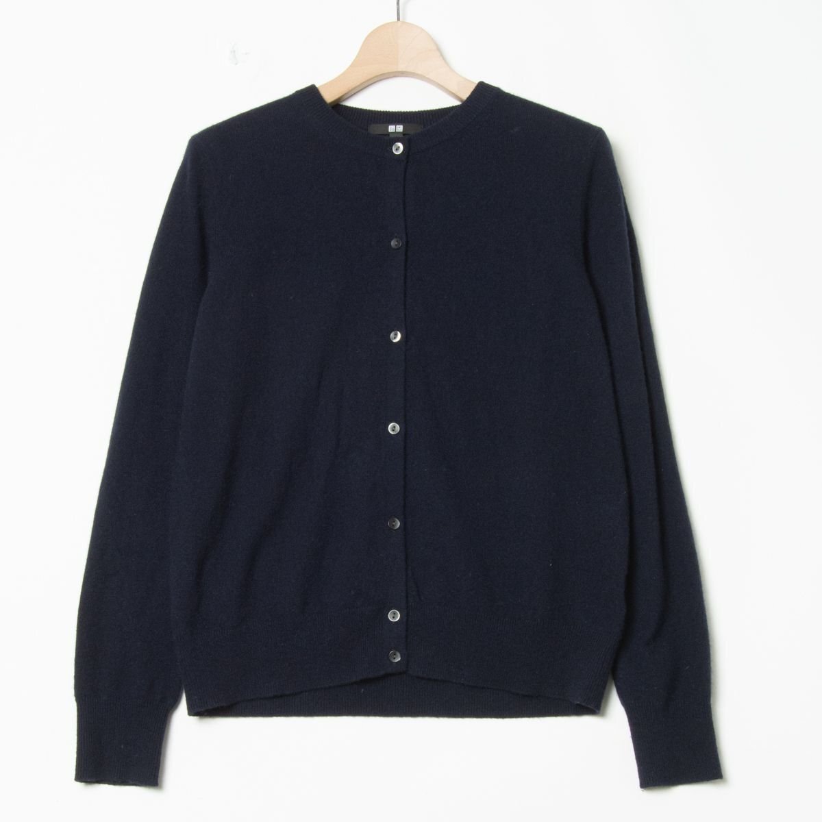 - 【1円スタート】UNIQLO ユニクロ カシミヤクルーネックカーディガン WOMEN XL 251-151955 定番 ベーシック シンプル 紺 長袖セーター 冬
