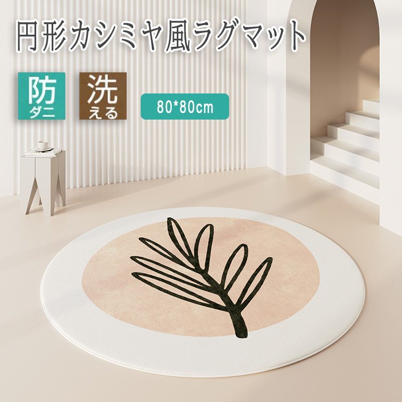 - 洗えるラグ ラグマット 円形 ラウンド 80*80cm 冬 暖かい カーペット 防ダニ 滑り止め おしゃれ 北欧 オールシーズン 12-80cm