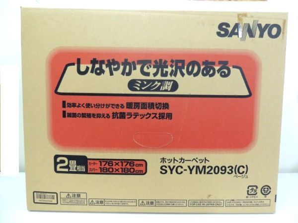 > 【未開封品】SANYO ホットカーペット 暖房面積切換 SYC-YM2093(C) ベージュ 2畳相当 176×176cm カバー180cm×180cm/140