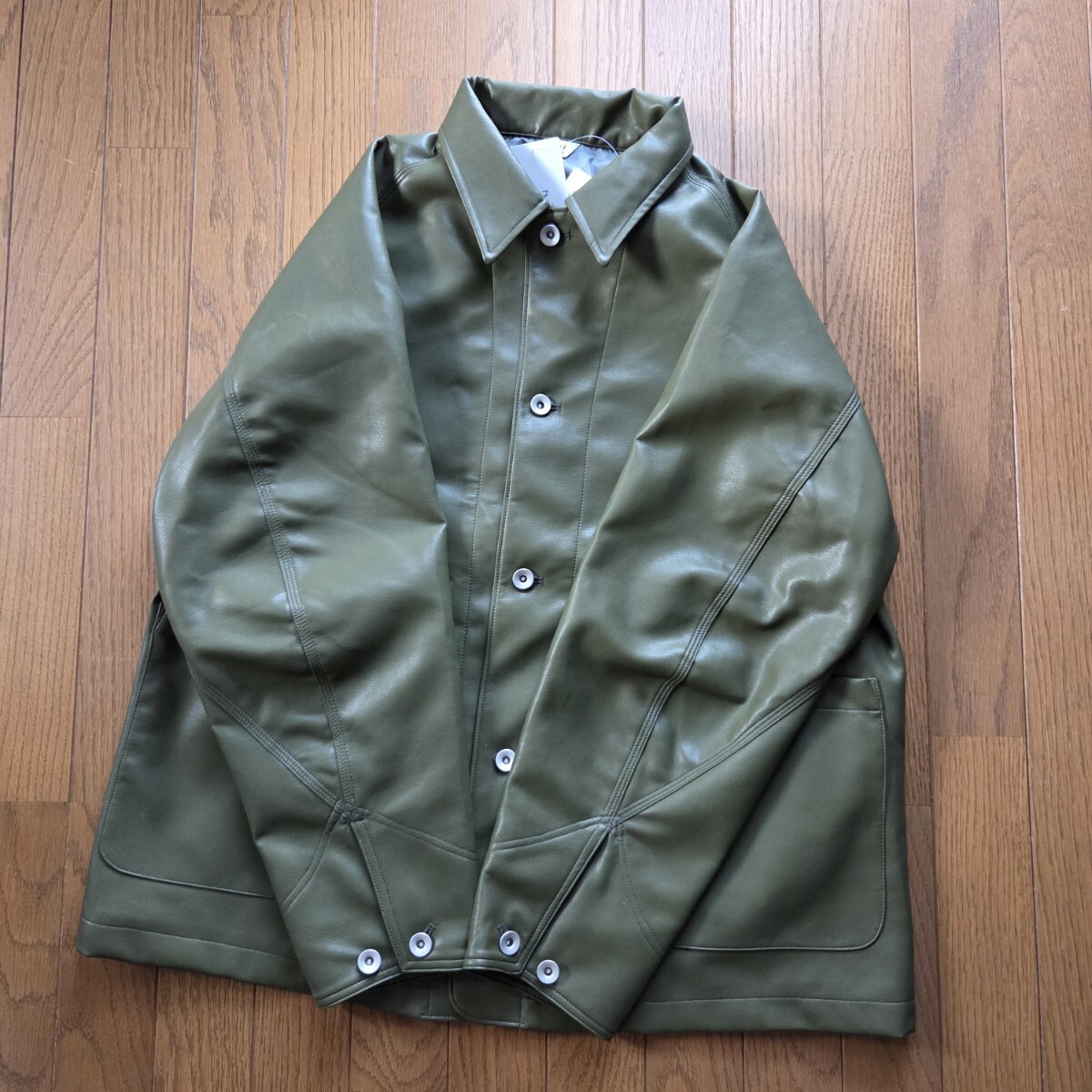 > 【新品未使用】 417 EDIFICE フォーワンセブン エディフィス フェイクレザー ジャケット カバーオール オリーブ カーキ Mサイズ