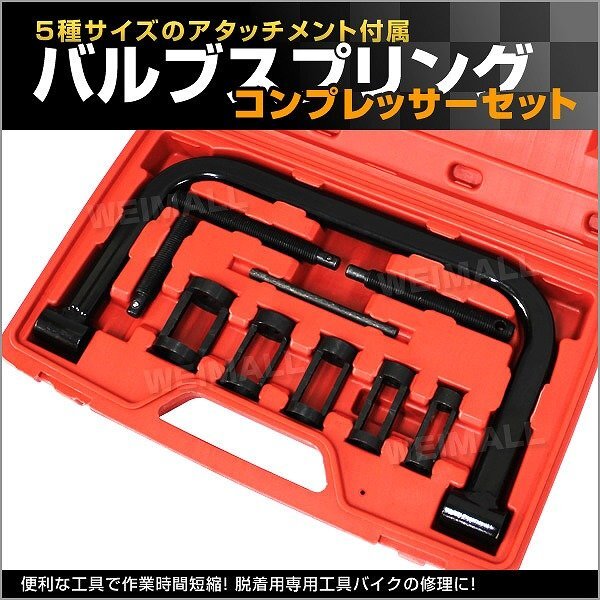 - 新品未使用 バルブスプリングコンプレッサー セット 5種類アタッチメント ケース付き 脱着用専用工具 バルブ交換 メンテナンス