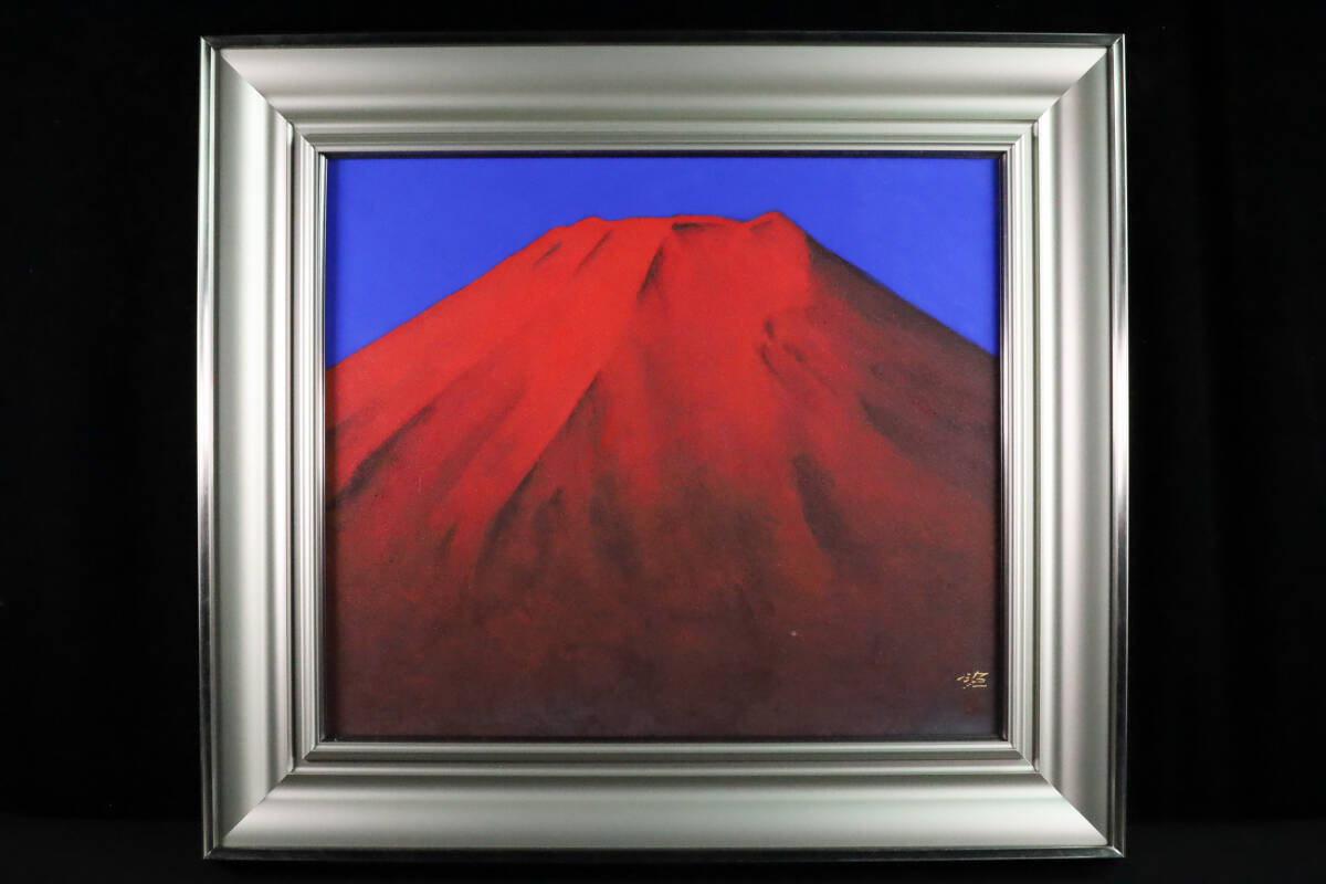 > ◇雅◇ 真作保証 佐藤昭三 「赤富士」 10号 日本画 金落款 共シール 日展会友 師:加藤栄三 タトウ箱 額装 /RG.25.11 [C110.2] OT2