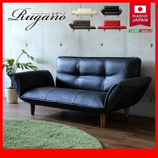 - ソファ★2人掛け コンパクトカウチソファ/脚なしで ローソファ/ポケットコイル リクライニング レザー風 日本製 完成品/黒 茶 白系 赤/zz