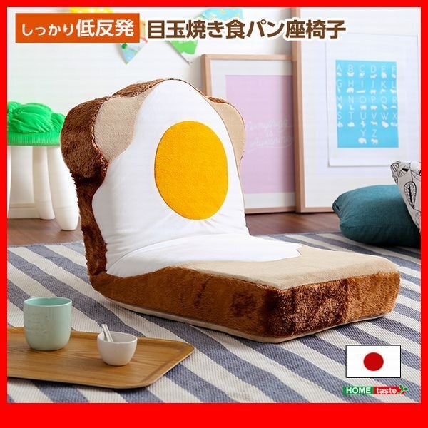 - 座椅子★新品/食パンシリーズ かわいい目玉焼き食パン座椅子/ふかふか 起毛/リクライニング ウォッシャブル 日本製 完成品/ベージュ/zz