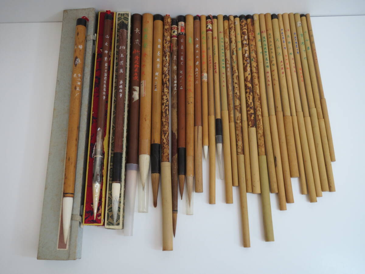 - (d-7) 中国 筆 湖洲筆店・上海筆店・湖洲王一品・得応軒 他 30本セット 書道具