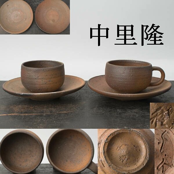 - 【千h0946】中里隆 種子島焼 4点(カップ2客・皿2枚)箱無 種子島 南蛮 焼締 カップ&ソーサー