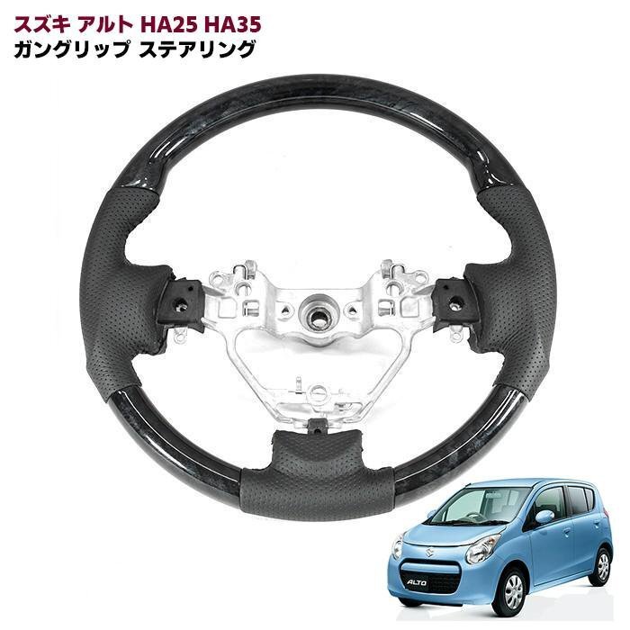 > スズキ アルト HA25 後期 HA35 後期 ガングリップ ステアリング 黒木目 新品 PVCレザー マツダ キャロル HB25S HB35S HA25S HA35S