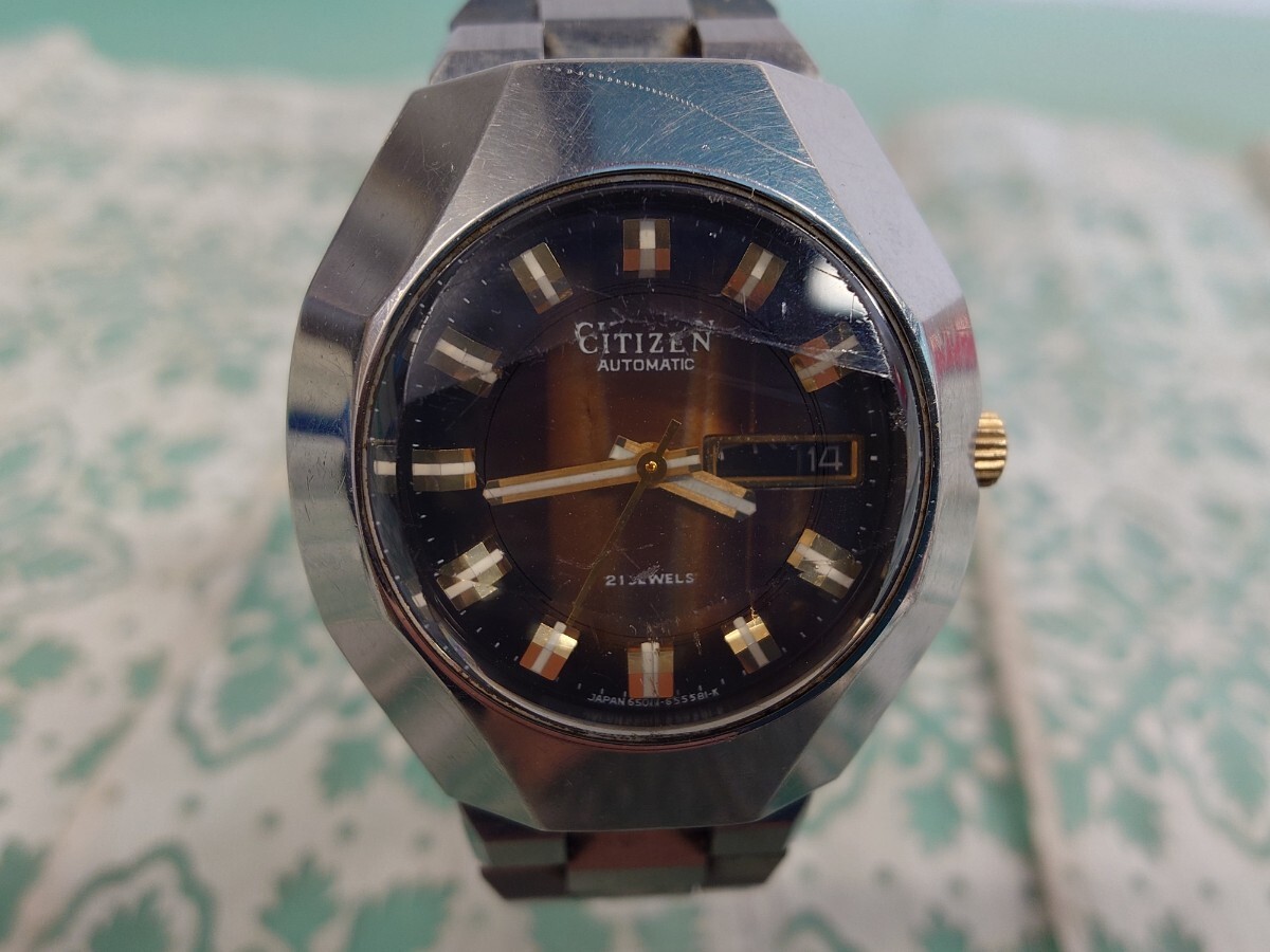 - ●70's CITIZEN シチズン 21石 EF.11894/1 グラデーション ブラウン文字盤 カットガラス 純正ベルト 自巻き ジャンク品 ①