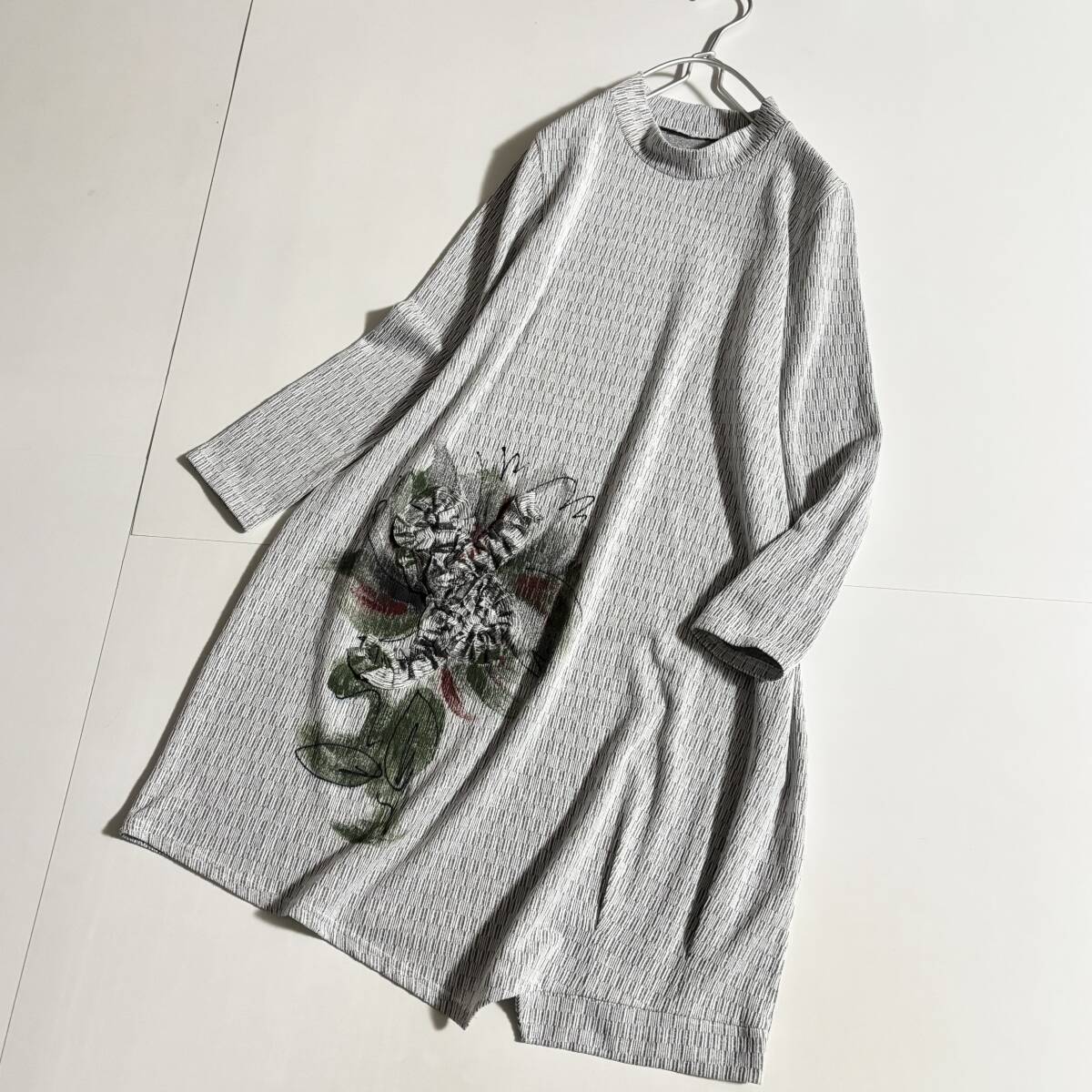 - PORE PORE // 花・フラワー柄 グレー系霜降り ワンピース ③
