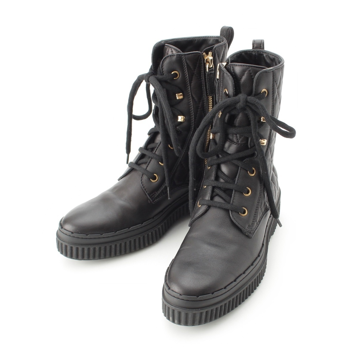 - トッズ レザー キルティング サイドジップ レースアップ ショート ブーツ ブラック 36【中古】