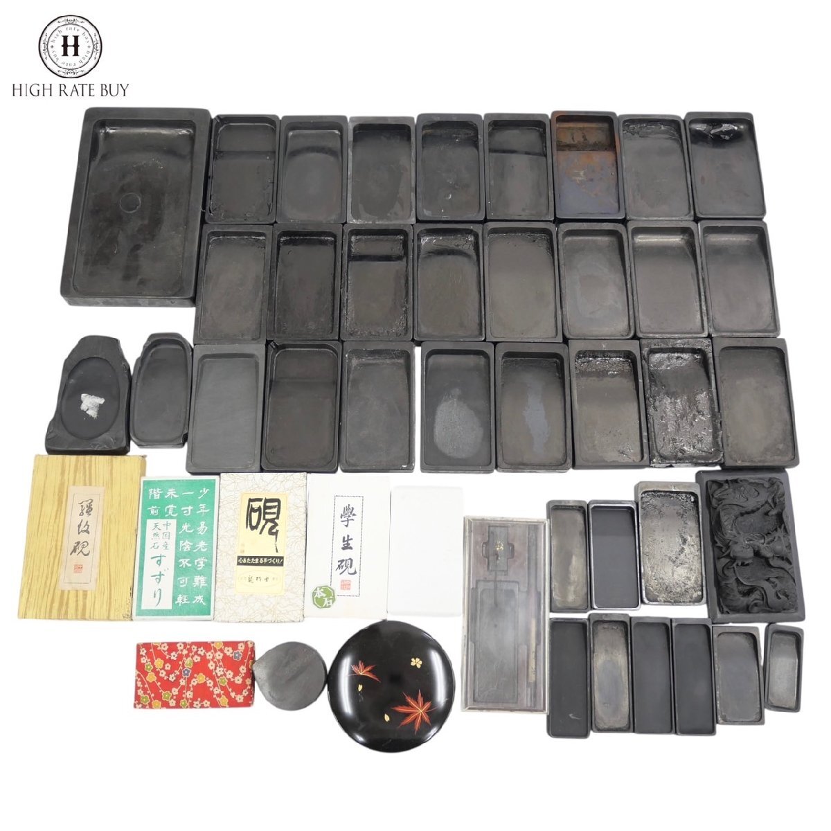 - 1円スタート 書道具 まとめ46点セット 硯 墨 筆 セット 書道 伝統 アンティーク ヴィンテージ 骨董 日本 中国 古美術 コレクション
