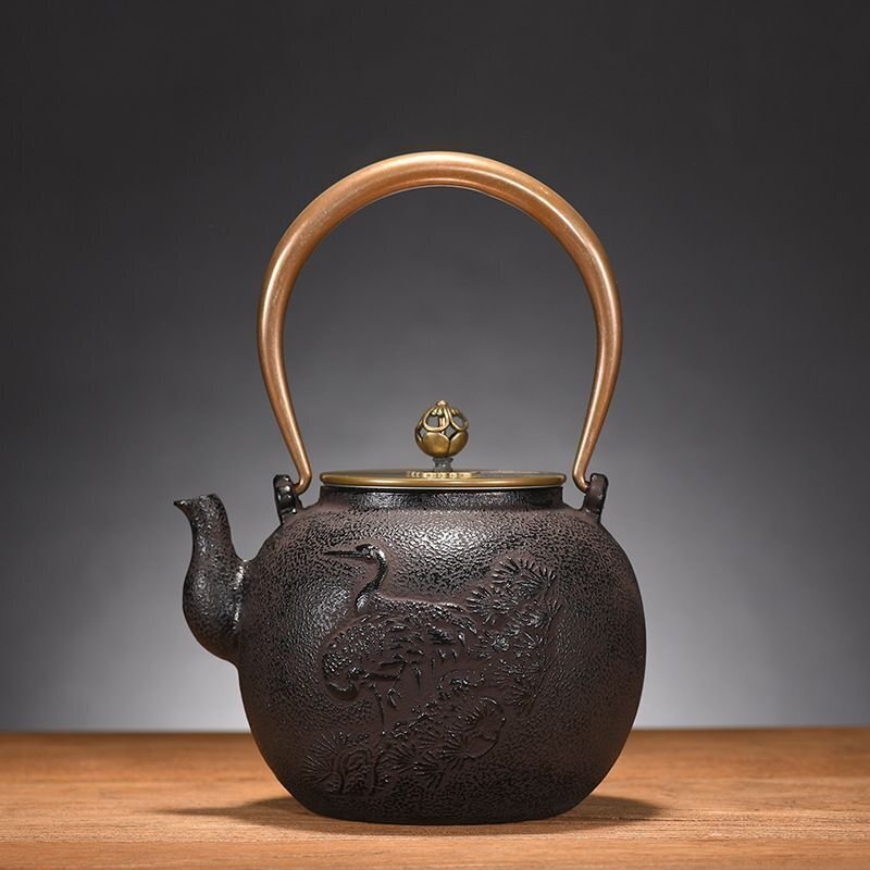 - 老鉄瓶 壺 鉄やかん 1300ml 道具 職人手作り 鉄びん 鉄分補給 急須 茶こし付き 未塗装鉄器 銅製取っ手