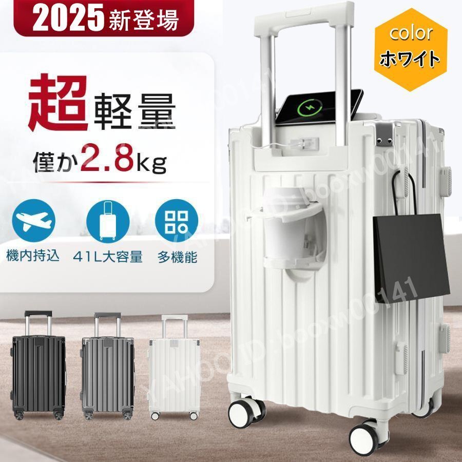 > スーツケース キャリーケース 超軽量 大容量 41L 耐荷重150kg 多機能 360度回転 静音 USBポート付き 機内持ち込み 旅行 ホワイト hhw0015.3