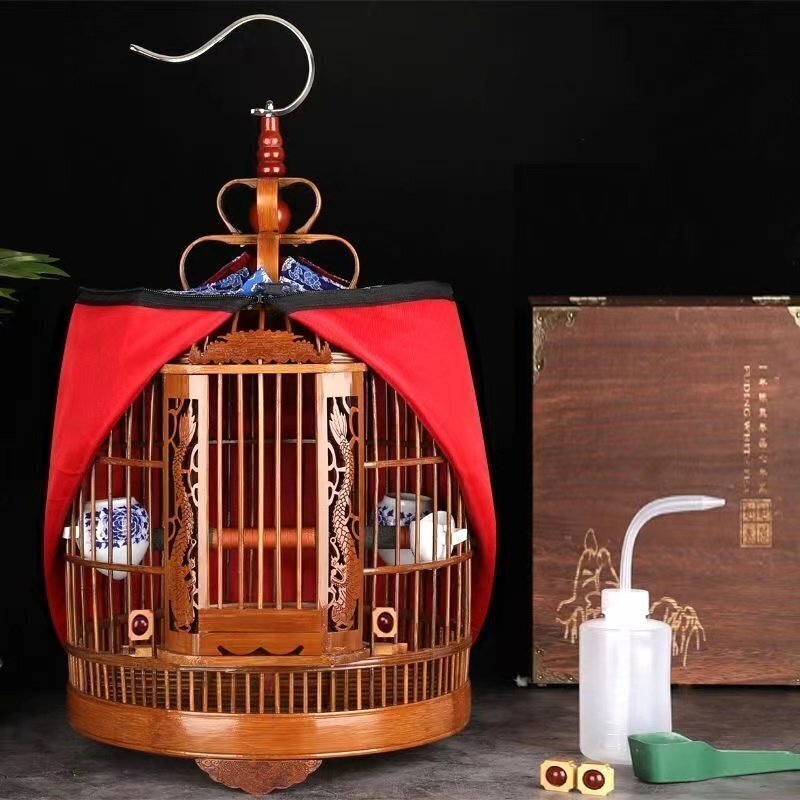 - 美品☆手作り 鳥かご 木彫り 彫刻 竹製 竹細工 アンティーク 木製 鳥籠 工芸品