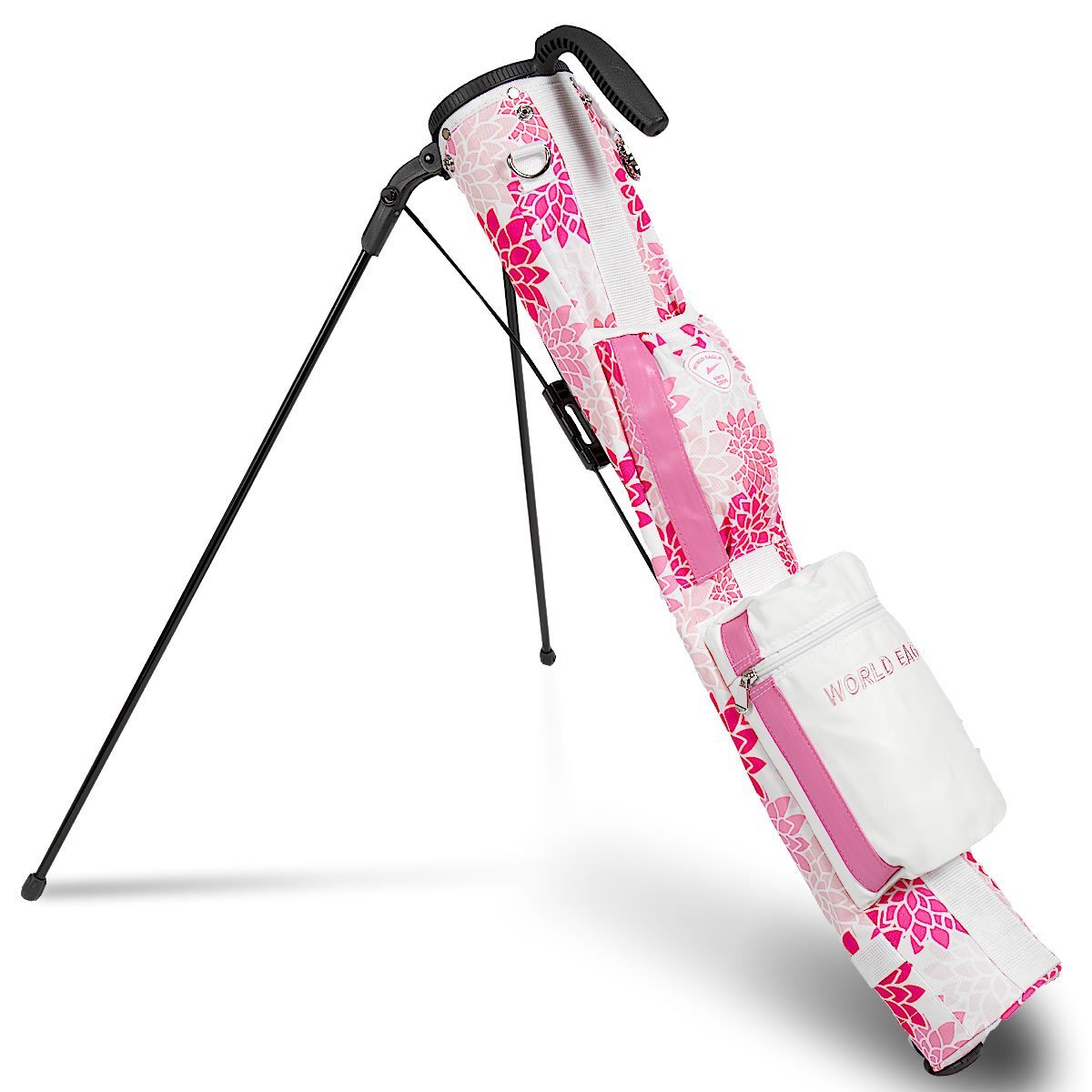 - ラウンドが楽々!軽量・頑丈!ワールドイーグル セルフスタンドクラブケースフード&大型ポケット付き ピンクフラワー[37986]