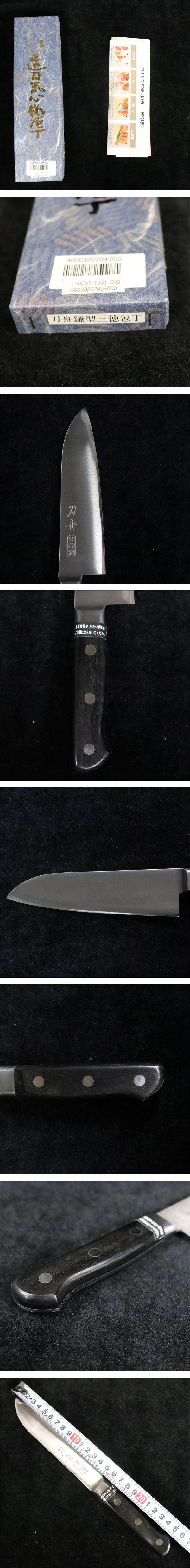 > ■【美品】造刀気心 特選 刀舟 鎌型三徳包丁 全長約26cm 刃渡り約15cm SS超鋼 多重層鋼 万能 元箱付き 槌目 高級 特選 _LFM_C1112-F020