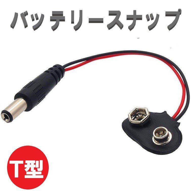 - T型バッテリースナップ 15cm 9V電池 ACアダプタ 電池コネクター ワイヤーケーブル DIY