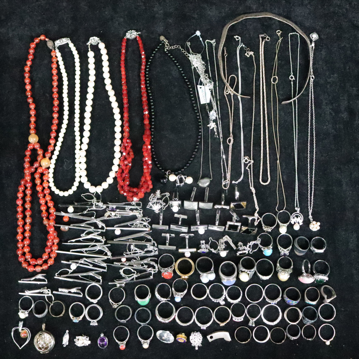 - ★【SILVER925 刻印含む】シルバーカラーアクセサリーまとめ ジュエリー リング 指輪 ネックレス タイピン ピアス カフス _JFE_C1118-F013
