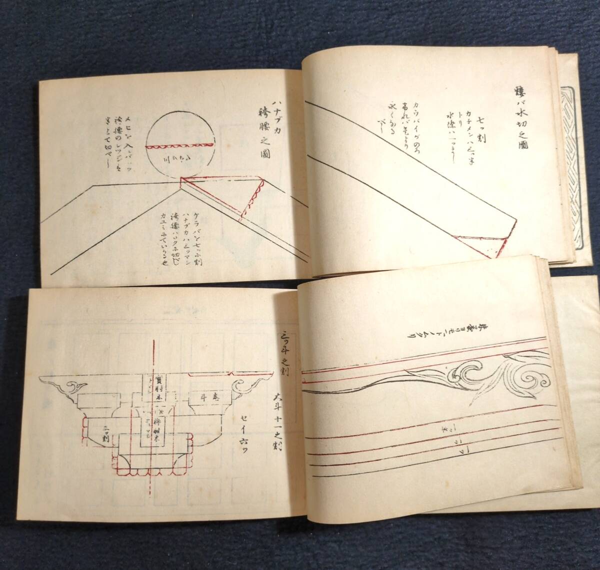 > Y696 建築 絵入◆初心手引 左官雛形◆上下 全2冊揃 宮大工 木造 図案 明治 時代物 浮世絵UKIYOE 木版画 骨董 古美術 古文書 和本 古書