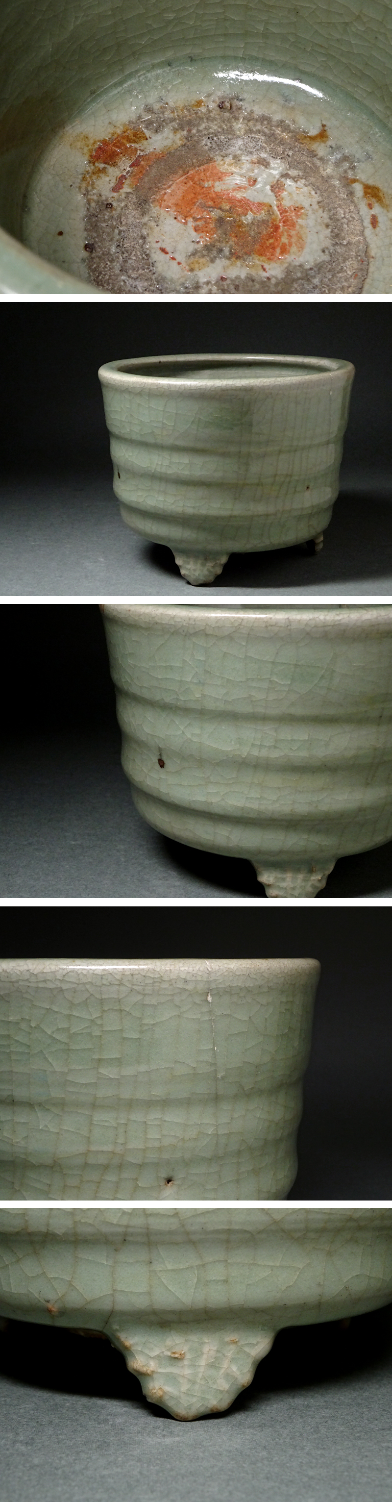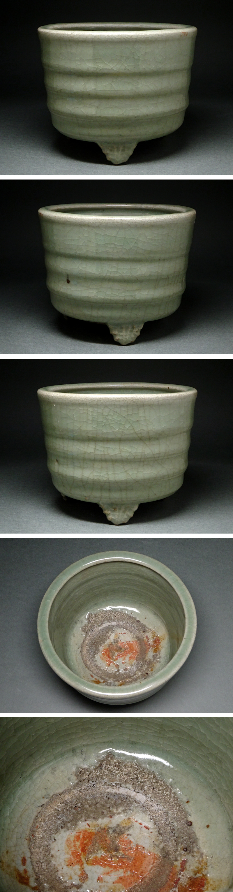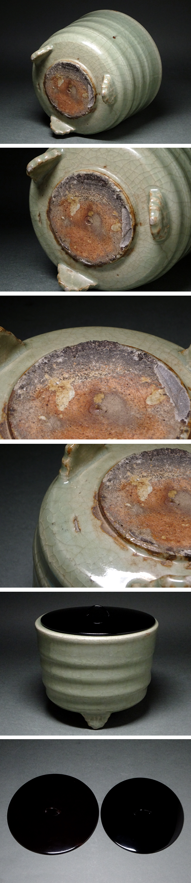 - 慶應◆下総国佐倉藩第6代藩主堀田正倫正室【堀田吉子(号:玉映)】書付時代箱入 中国明代末期 龍泉窯七官青磁大香炉 水指 漆蓋添 唐物茶道具