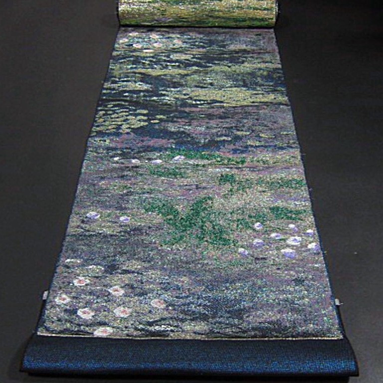 - 新品未仕立 豪華 西陣織六通柄丸巻袋帯 モネ 睡蓮 スイレン