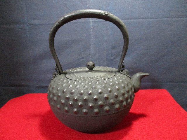 - 日本製 南部鉄瓶 純砂鉄製鉄瓶 名工・薫山造 鬼霰紋 蓋裏ー砂鉄銘 鉄瓶 茶道具 煎茶道具
