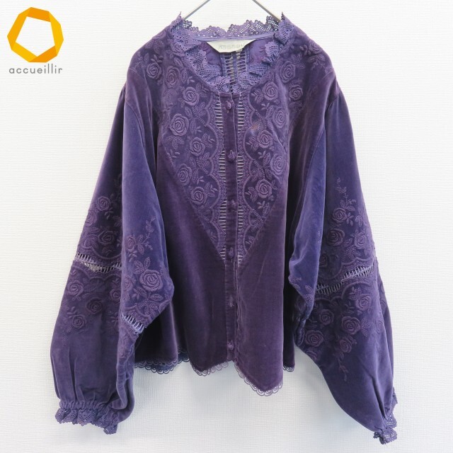 ◎商品名(タイトル):バラ色の暮し バラクラ シャツ ブラウス ベロア 薔薇刺繍 花柄 [x962928]◎ブランド名:バライロノクラシ (バラ色の暮し)◎アイテム名:シャツ ブラウス◎サイズ:-◎性別:レディース◎カラー:紫系◎素材:画像をご参照ください◎実寸サイズ:肩幅約 40cm・袖丈約 60cm・着丈約 54cm・胸囲約 55cm×2◎商品コメント:★当店の商品はすべてリユースアイテムとなります。特質上、些細なダメージは記載しておりませんので着用に問題のない使用感、着古した雰囲気などはご了承くださいませ。◎コンディションレベル:やや傷や汚れあり◎コンディション備考:各所に薄い汚れと、下から二番目のボタンがありません(画像3.4参照)キーワード/アクイール/古着/used/ビンテージ/ヴィンテージ/レトロ/昭和/パープル系/薔薇/バラ刺繍/花